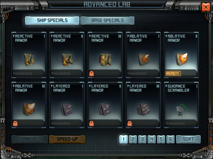 Both Ship Specials and Base Specials can be researched in the Advanced Lab or accessed via Blueprints gained through events. Specials you have gained through events can be found under the "Advanced" tab in your Intelligence Lab.